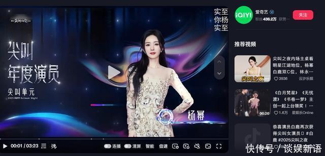 39岁杨幂获得爱奇艺尖叫年度演员